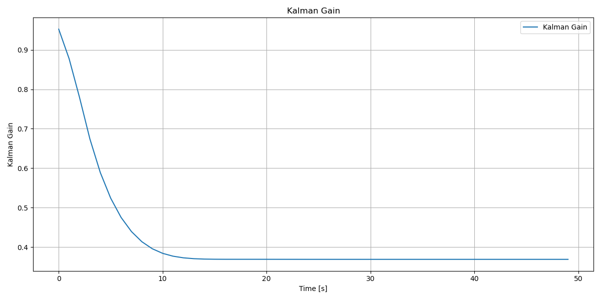 Don’t be intimidated by this expression. We are performing matrix multiplications, but fundamentally, what happens is that we multiply matrices containing the measurement variance and then invert them, subsequently multiplying by the predicted covariance. Because we take the inverse, as the measurement variance increases, the value of this multiplication decreases. Consequently, the higher the measurement variance, the less informative the measurement is. The Kalman Gain ensures that this information is appropriately factored into the final state estimation. I recommend deriving this expression manually to gain a deeper understanding.